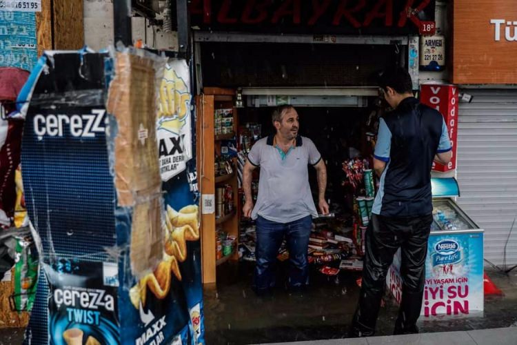 Şiddetli yağan yağmurda dükkanını basan esnaf