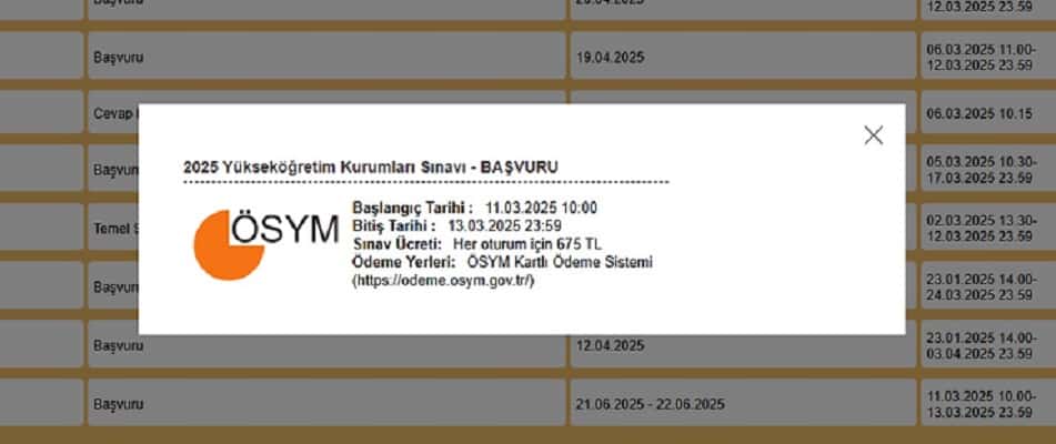 2025-YKS: Başvuruları 11 Mart 2025 saat 10.00 ile 13 Mart saat 23.59 arasında alınacak, geç başvuru ücreti oturum başına 675 liradır.