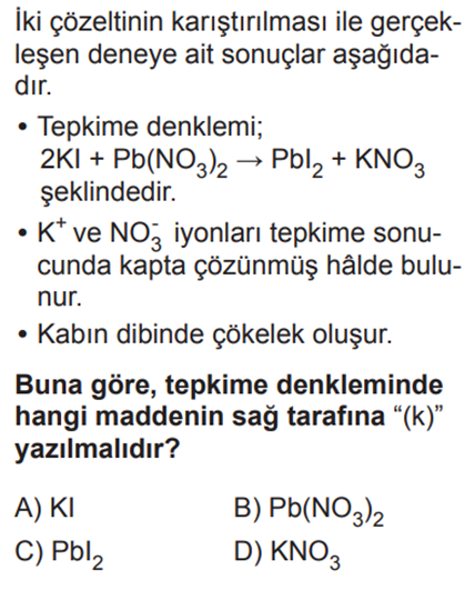 Açık Lise (433) Kimya 3 Testi (Temmuz 2020)